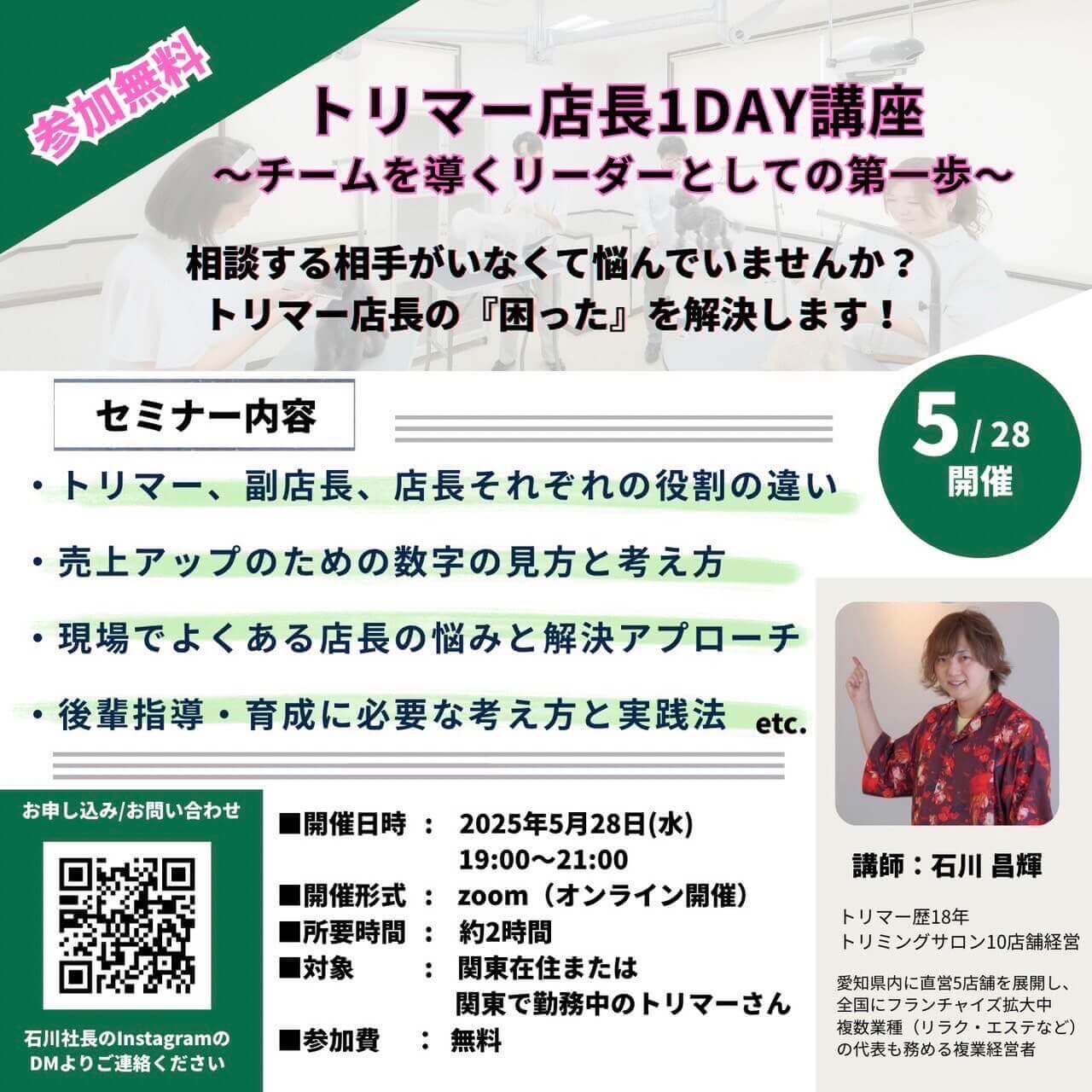 【無料開催】トリマー店長1DAY講座のご案内